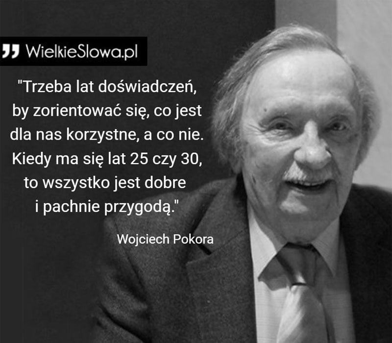 „Trzeba lat doświadczeń, by zorientować się, co jest dla nas korzystne, a co nie. Kiedy ma się lat 25 czy 30, to wszystko jest dobre i pachnie przygodą” – Wojciech Pokora