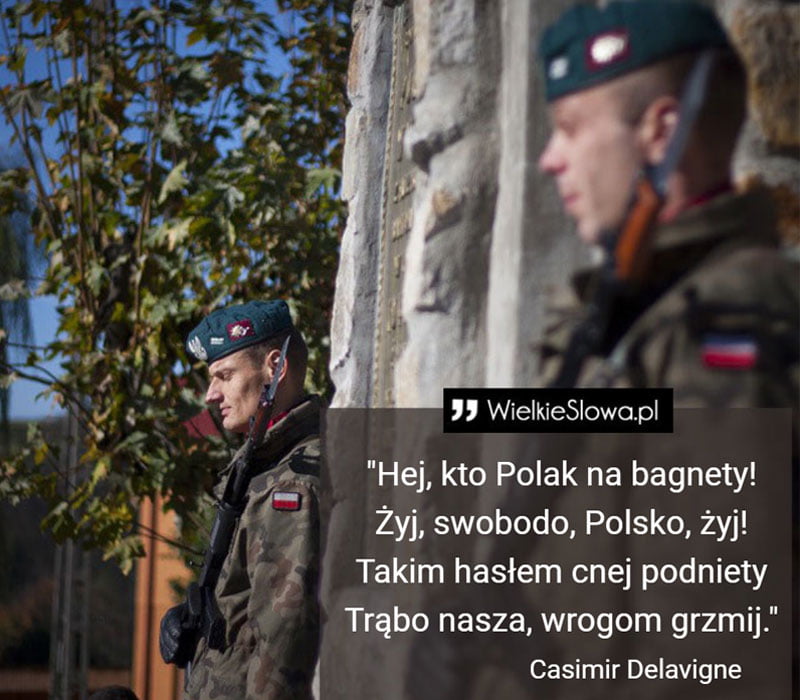 in Polska i polskość Hej, kto Polak, na bagnety! Żyj, swobodo, Polsko, żyj! 471 Views Casimir Delavigne – cytaty „Hej, kto Polak, na bagnety! Żyj, swobodo, Polsko, żyj! Takim hasłem cnej podniety Trąbo nasza wrogom grzmij!” – Casimir Delavigne Delavigne Casimir Dodaj komentarz Anuluj pisanie odpowiedziTwój adres e-mail nie zostanie opublikowany. Wymagane pola są oznaczone *Komentarz * Nazwa * Adres e-mail * Witryna internetowa Δ Ta strona używa Akismet do redukcji spamu. Dowiedz się, w jaki sposób przetwarzane są dane Twoich komentarzy. Next post