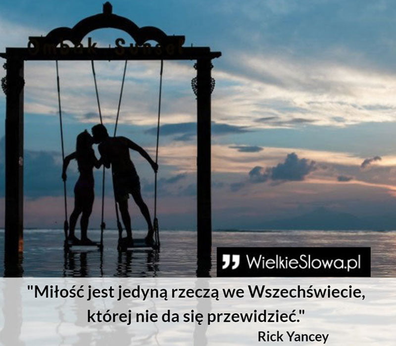 in Miłość Miłość jest jedyną rzeczą we Wszechświecie… 407 Views Rick Yancey – cytaty „Miłość jest jedyną rzeczą we Wszechświecie, której nie da się przewidzieć” – Rick Yancey Yancey Rick Dodaj komentarz Anuluj pisanie odpowiedziTwój adres e-mail nie zostanie opublikowany. Wymagane pola są oznaczone *Komentarz * Nazwa * Adres e-mail * Witryna internetowa Δ Ta strona używa Akismet do redukcji spamu. Dowiedz się, w jaki sposób przetwarzane są dane Twoich komentarzy. Next post