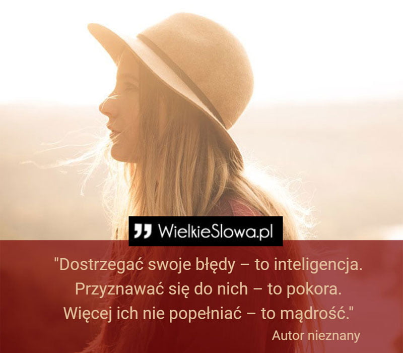 Dostrzegać swoje błędy – to inteligencja. Przyznawać się do nich – to pokora. Więcej ich nie popełniać – to mądrość