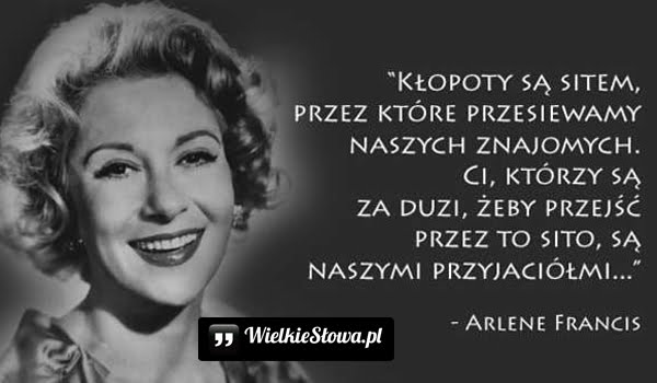 Kłopoty są sitem, przez które przesiewamy naszych znajomych. Ci, którzy są za duzi, żeby przejść przez to sito, są naszymi przyjaciółmi. Arlene Francis