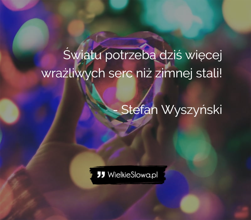 in Współczucie i litość Światu potrzeba dziś 417 Views Stefan Wyszyński – cytaty Światu potrzeba dziś więcej wrażliwych serc niż zimnej stali! – Stefan Wyszyński Wyszyński Stefan Dodaj komentarz Anuluj pisanie odpowiedziTwój adres e-mail nie zostanie opublikowany. Wymagane pola są oznaczone *Komentarz * Nazwa * Adres e-mail * Witryna internetowa Δ Ta strona używa Akismet do redukcji spamu. Dowiedz się, w jaki sposób przetwarzane są dane Twoich komentarzy. Next post