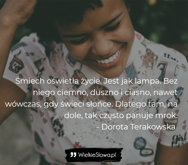 Śmiech oświetla życie. Jest jak lampa. Bez niego ciemno, duszno i ciasno, nawet wówczas, gdy świeci słońce. Dlatego tam, na dole, tak często panuje mrok.