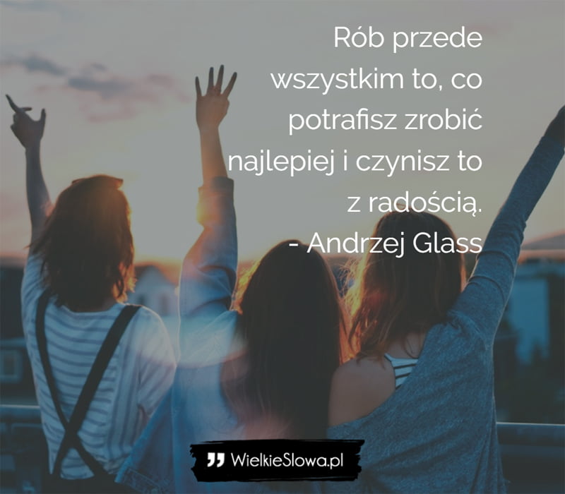 in Radość Rób przede wszystkim to 481 Views Andrzej Glass – cytaty Rób przede wszystkim to, co potrafisz zrobić najlepiej i czynisz to z radością. – Andrzej Glass Glass Andrzej Dodaj komentarz Anuluj pisanie odpowiedziTwój adres e-mail nie zostanie opublikowany. Wymagane pola są oznaczone *Komentarz * Nazwa * Adres e-mail * Witryna internetowa Δ Ta strona używa Akismet do redukcji spamu. Dowiedz się, w jaki sposób przetwarzane są dane Twoich komentarzy. Next post
