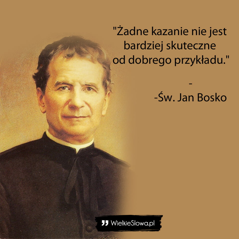 in Kościół Żadne kazanie nie jest bardziej skuteczne… 625 Views Św. Jan Bosko – cytaty „Żadne kazanie nie jest bardziej skuteczne od dobrego przykładu.” – Św. Jan Bosko św. Jan Bosco Dodaj komentarz Anuluj pisanie odpowiedziTwój adres e-mail nie zostanie opublikowany. Wymagane pola są oznaczone *Komentarz * Nazwa * Adres e-mail * Witryna internetowa Δ Ta strona używa Akismet do redukcji spamu. Dowiedz się, w jaki sposób przetwarzane są dane Twoich komentarzy. Next post