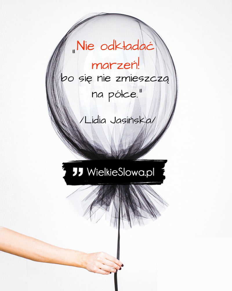 in Marzenia i pragnienia Nie odkładać marzeń… 519 Views Lidia Jasińska – cytaty Nie odkładać marzeń, bo nie zmieszczą się na półkę. – Lidia Jasińska Jasińska Lidia Dodaj komentarz Anuluj pisanie odpowiedziTwój adres e-mail nie zostanie opublikowany. Wymagane pola są oznaczone *Komentarz * Nazwa * Adres e-mail * Witryna internetowa Δ Ta strona używa Akismet do redukcji spamu. Dowiedz się, w jaki sposób przetwarzane są dane Twoich komentarzy. Next post