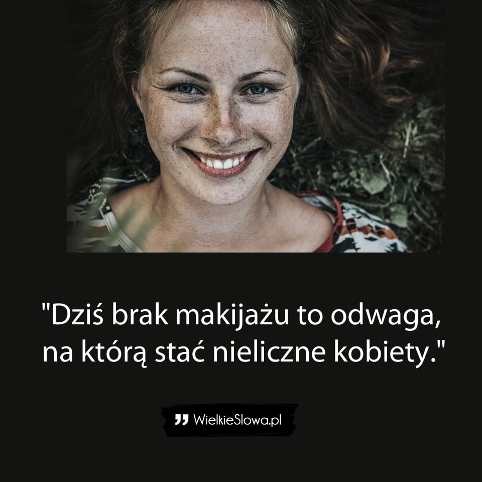 in Kobieta, Piękno Dziś brak makijażu to odwaga… 619 Views „Dziś brak makijażu to odwaga, na którą stać nieliczne kobiety.” -Autor nieznany Autor nieznany Dodaj komentarz Anuluj pisanie odpowiedziTwój adres e-mail nie zostanie opublikowany. Wymagane pola są oznaczone *Komentarz * Nazwa * Adres e-mail * Witryna internetowa Δ Ta strona używa Akismet do redukcji spamu. Dowiedz się, w jaki sposób przetwarzane są dane Twoich komentarzy. Next post