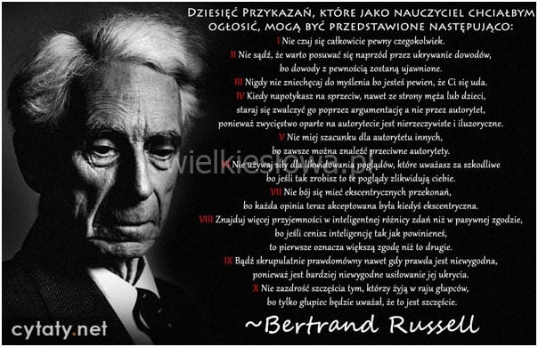 Arthur William Russell (1872-1970) – brytyjski filozof, logik, matematyk, działacz społeczny i eseista. W 1950 roku był laureatem Nagrody Nobla w dziedzinie literatury. W 1954 roku zainicjował kampanię pokojową Pugwash.