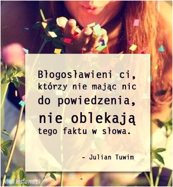 Julian Tuwim (1894-1953) – polski poeta żydowskiego pochodzenia, pisarz, autor skeczy, librett operetkowych i tekstów piosenek. Był jednym z najpopularniejszych poetów dwudziestolecia międzywojennego, współzałożycielem kabaretu literackiego „Pod Picadorem” i grupy poetyckiej „Skamander”, współpracownikiem tygodnika „Wiadomości Literackie” i tłumaczem poezji francuskiej, rosyjskiej, niemieckiej oraz łaciny.